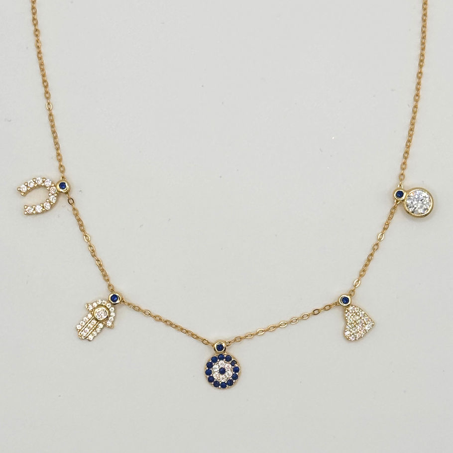 Discover peace and protection with CILLAMINA Jewelry's exquisite Evil Eye Charm Necklace. Crafted with a 14 kt gold overlay on sterling silver, this charming piece embodies elegance and resilience. The intricate design draws from ancient traditions to safeguard against negative energy while adding a touch of sophistication to any outfit. Perfectly reflecting CILLAMINA's commitment to quality and craftsmanship, this necklace is a stylish testament to the power of thoughtful design. Elevate your accessory collection with this meaningful and versatile piece.